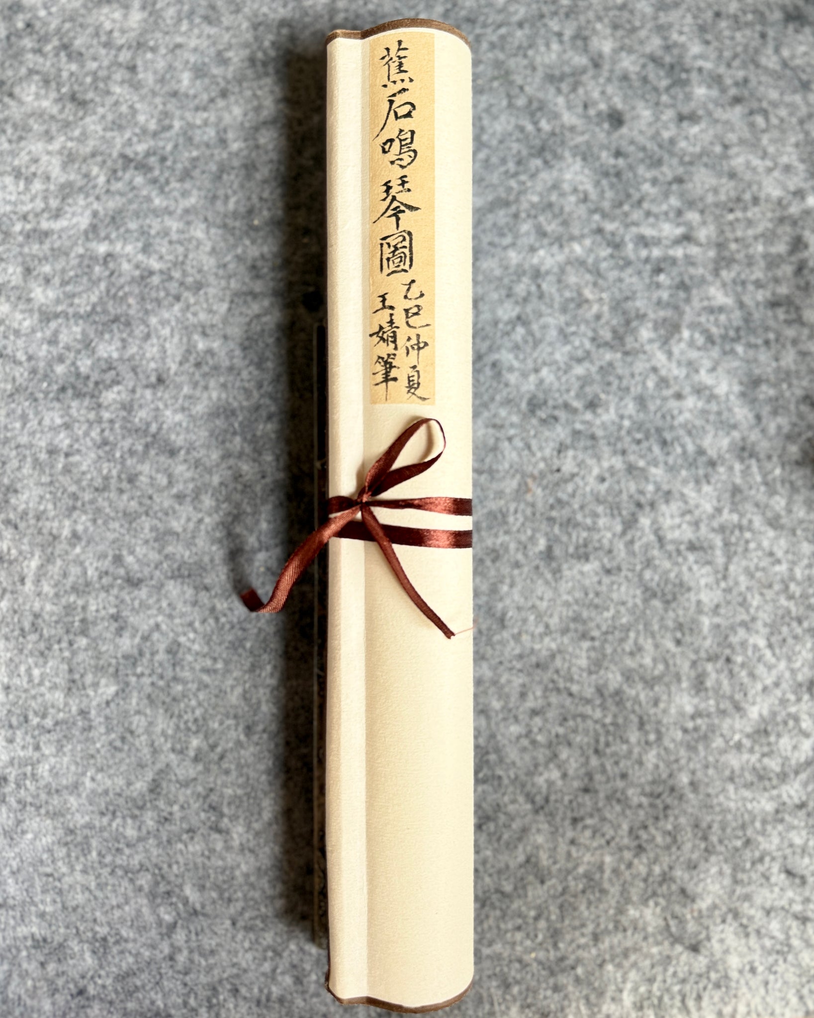 This is an ink painting and calligraphy on Xuan paper mounted on silk scroll, inspired by Wen Zhengming's Ming dynasty work of the same title. It embodies my enduring passion for the art of the Guqin and the aesthetic of scholar painting. Like ink painting, the Guqin expresses the realm of existence and void through silent language; the brushstrokes seem to resonate with its clear and distant tones. The two arts reflect and enhance each other, weaving a profound expression in stillness.